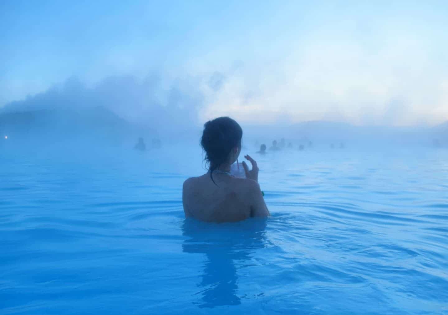 The highlight of the day is a relaxing visit to the Blue Lagoon geothermal spa. Soak in its warm, mineral-rich, milky blue waters, known for their skin-healing benefits. Surrounded by stunning lava fields, the lagoon offers the perfect way to unwind after a day of sightseeing. In winter, you might even spot the Northern Lights dancing above the lagoon.